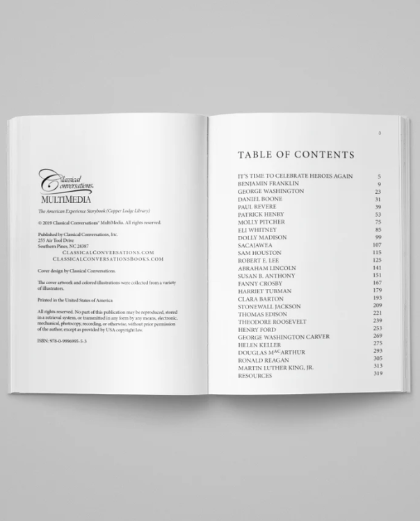 This delightful collection of history stories will whisk readers back to the old centuries in which they were written. Specially researched and compiled by Classical Conversations, this book contains an introduction on learning from a flawed world, short biographies of each historical “character,” informative and fun footnotes, and—of course—stories! These easy-to-read tales encourage readers to explore the lives and virtues of men and women like George Washington, Dolly Madison, Harriet Tubman, and Martin Luther King, Jr. The American Experience Storybook is a positive look at American heroes that can be shared with and enjoyed by the entire family.